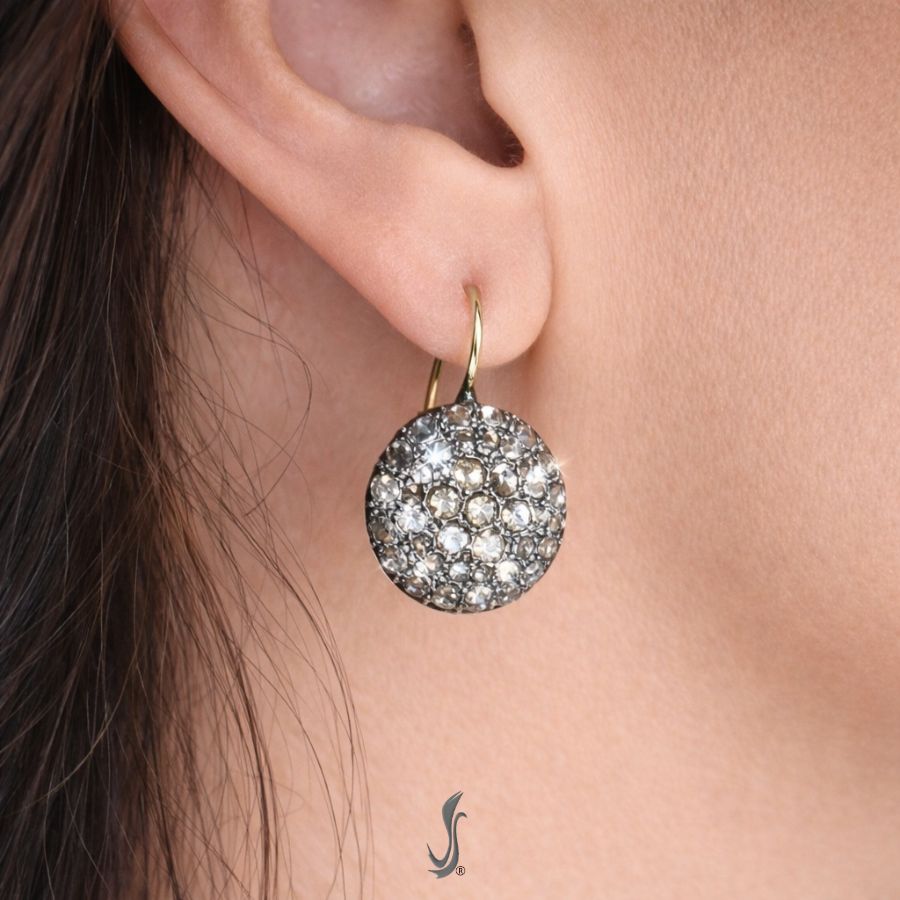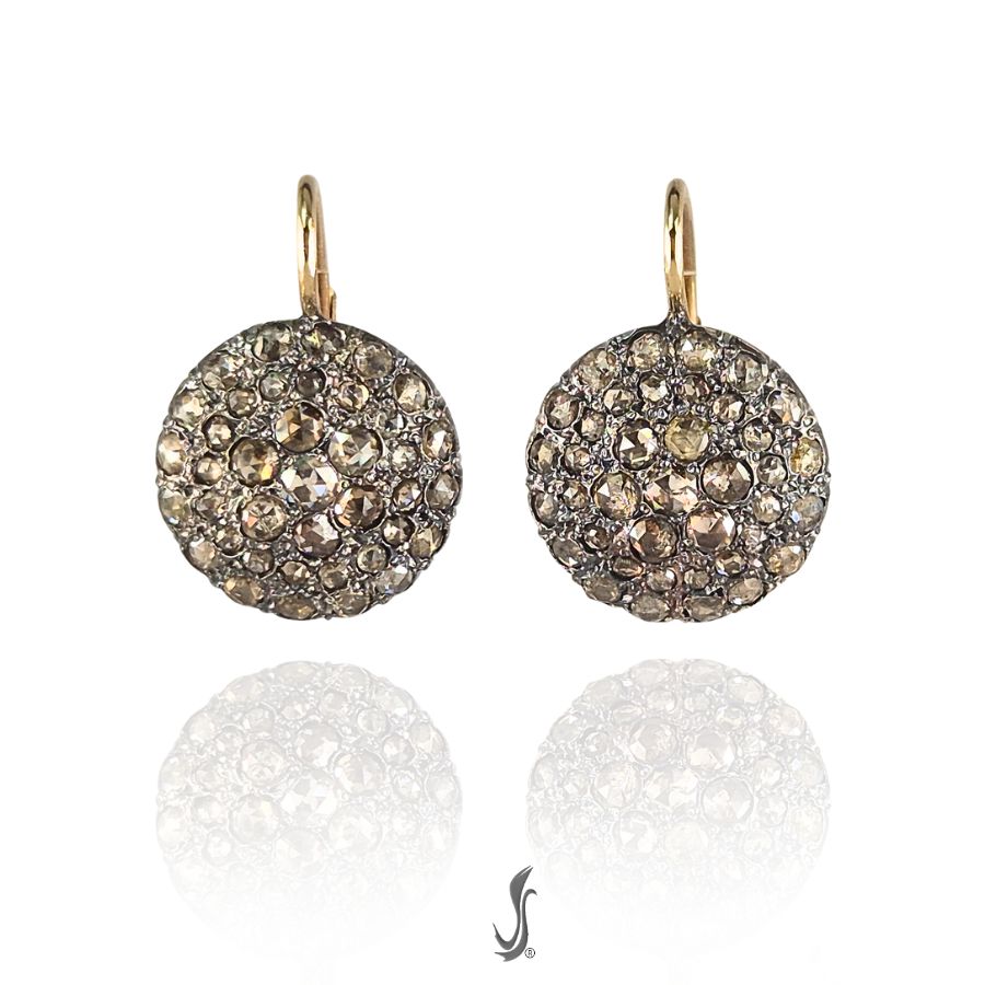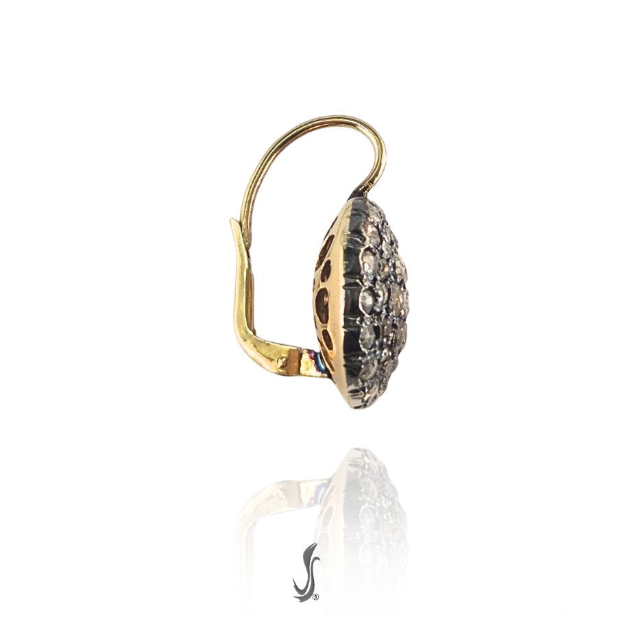 Orecchini toppa stile antico oro, argento e diamanti