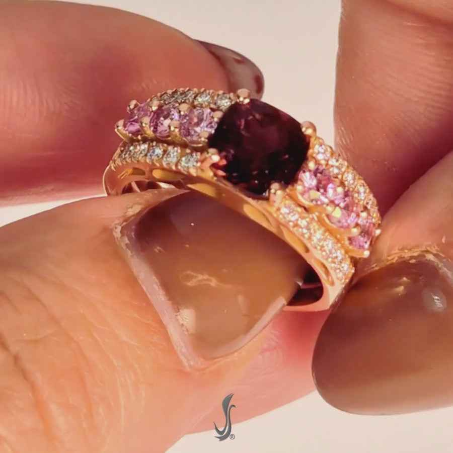 Anello in Oro Rosa con Granato Royal, Zaffiri Rosa e Diamanti