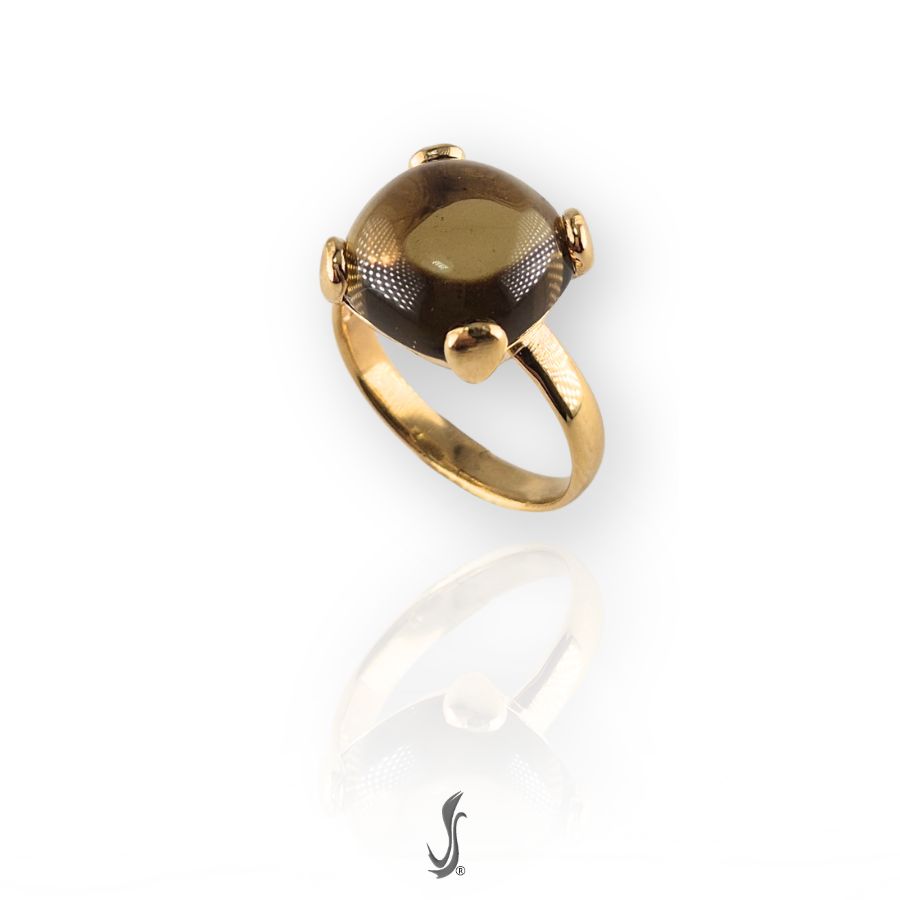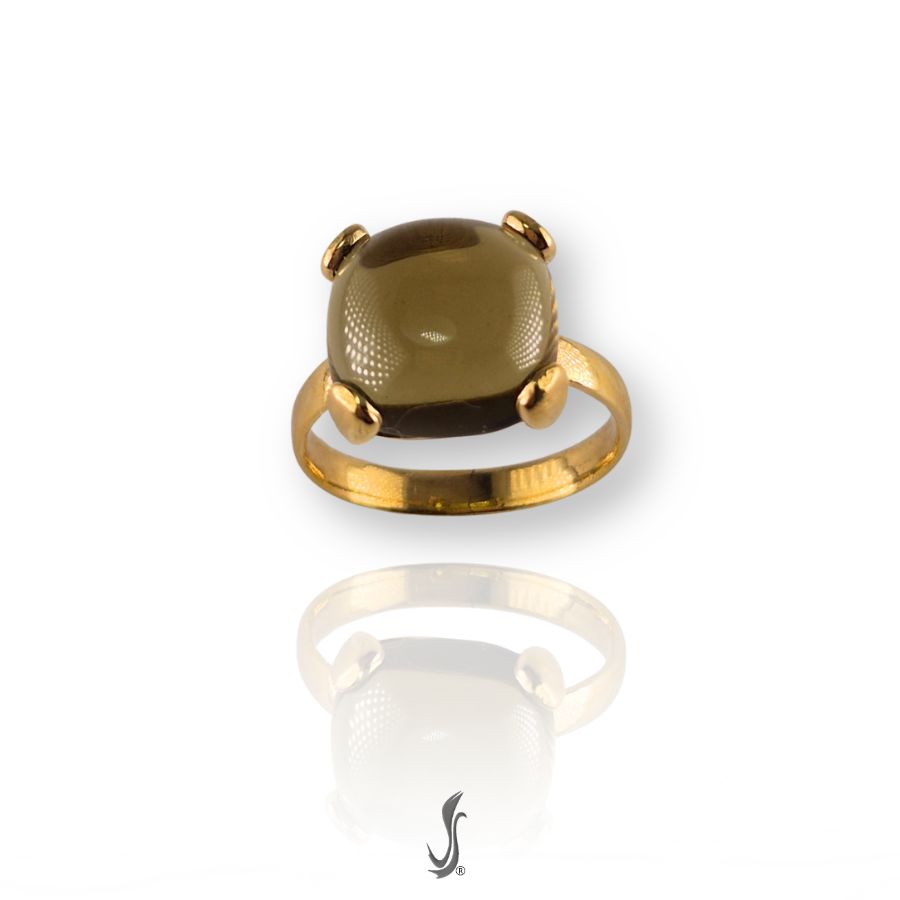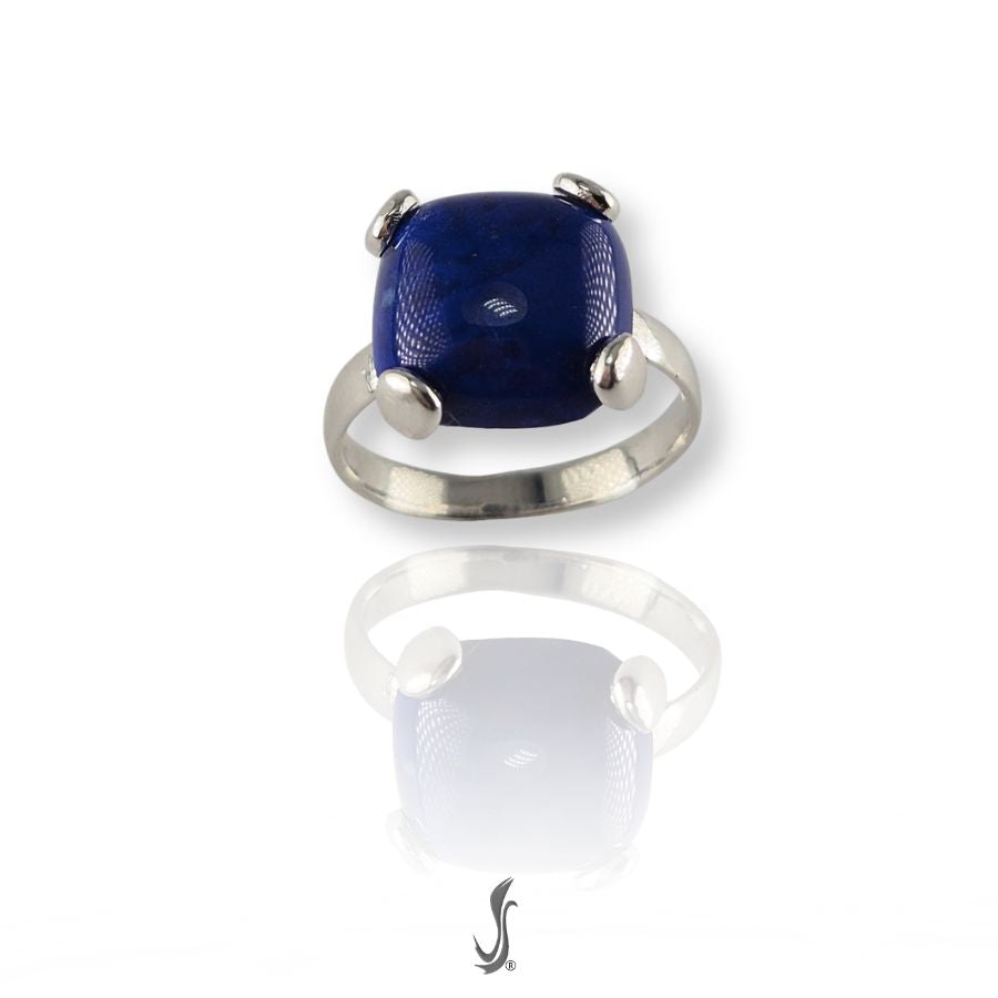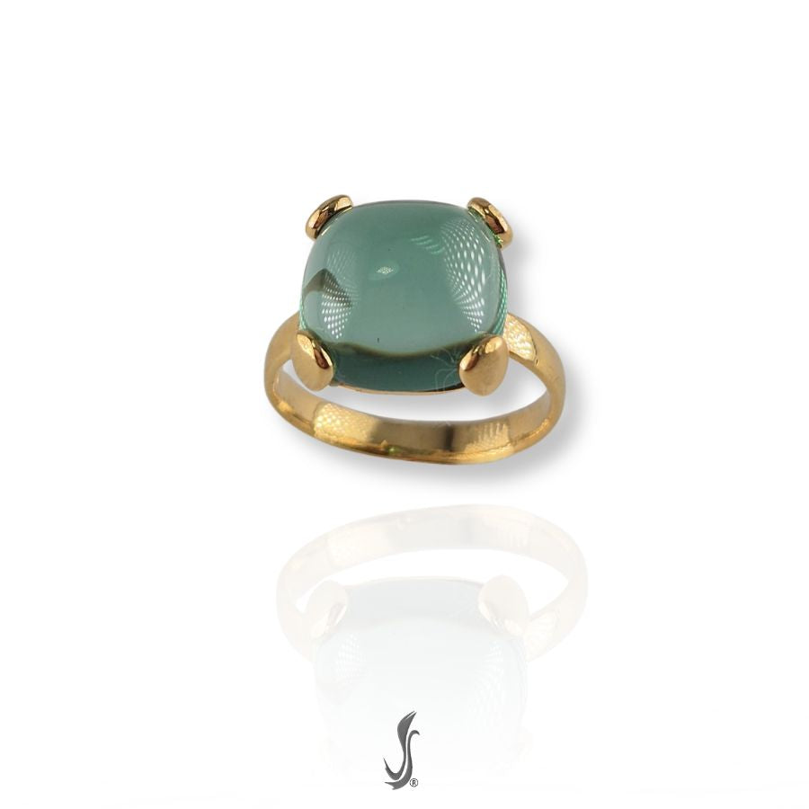 Il design pulito valorizza la pietra centrale dal taglio cabochon base quadrata da 12 x 12 mm, incastonata con griffes arrotondate che ne esaltano la morbidezza e la profondità cromatica.