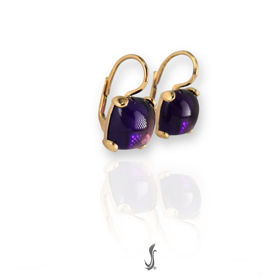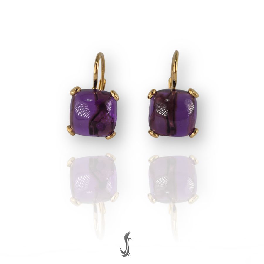 Gli orecchini in argento 925°°° dorato o bianco con cabochon a base quadrata uniscono design contemporaneo e intensità cromatica. Realizzati con lavorazione artigianale, sono impreziositi da pietre cabochon disponibili in versione pietre idrotermali verde e viola o lapislazzuli blu intenso, incastonate su montatura solida con chiusura a ponte e molla.