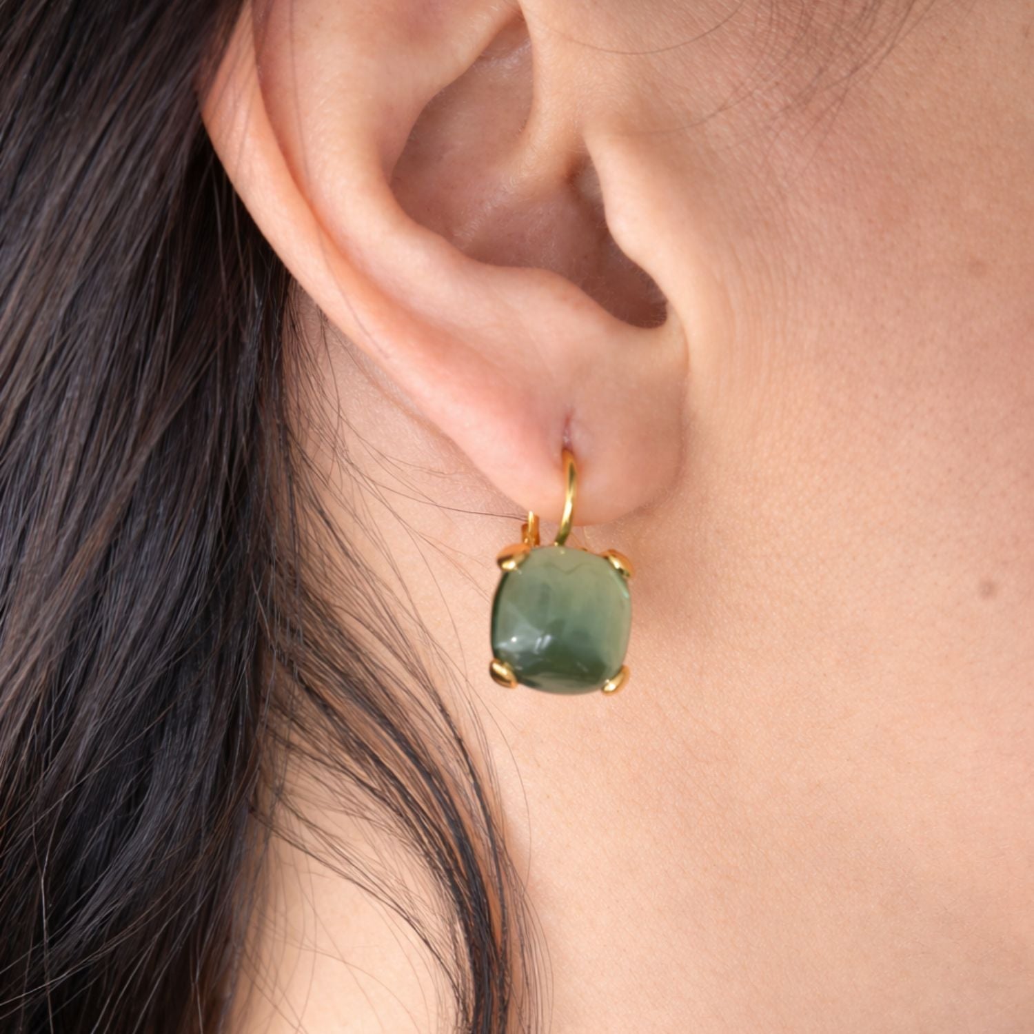 Il taglio cabochon esalta la profondità e la luminosità della pietra, mentre la forma quadrata con angoli morbidi dona equilibrio e modernità al gioiello. Perfetti da indossare ogni giorno o per completare un look elegante e sofisticato.