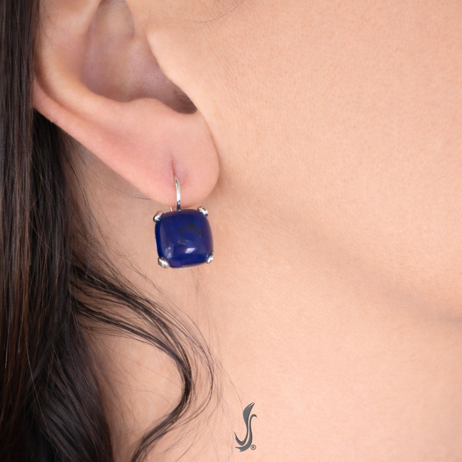 Orecchini in Argento 925 con Cabochon Quadrato – Pietre Idrotermali e Lapislazzuli